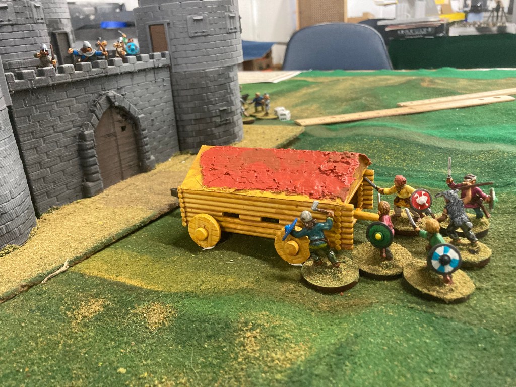 Here is a pic of a Viking game I ran at Advance the Colors in Fall of 2024. I designed and printed a castle for the game. I also modeled a battering ram and printed that out.