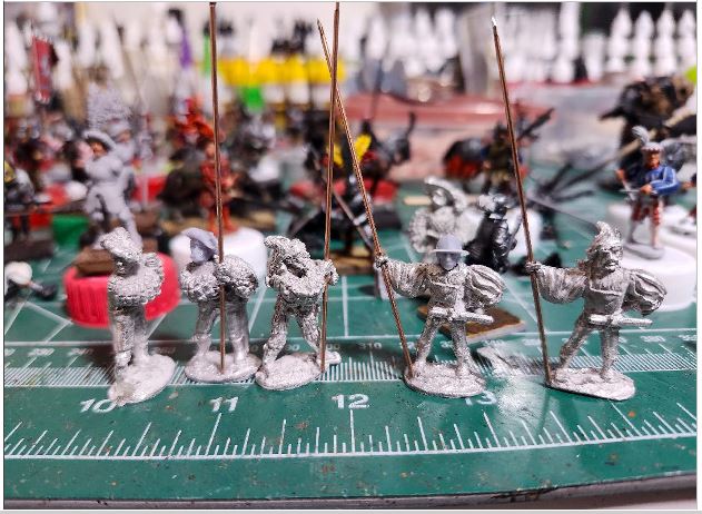 Figure 2: Outland Games Landsknecht Pikemen at Rest, ready for their primer.
